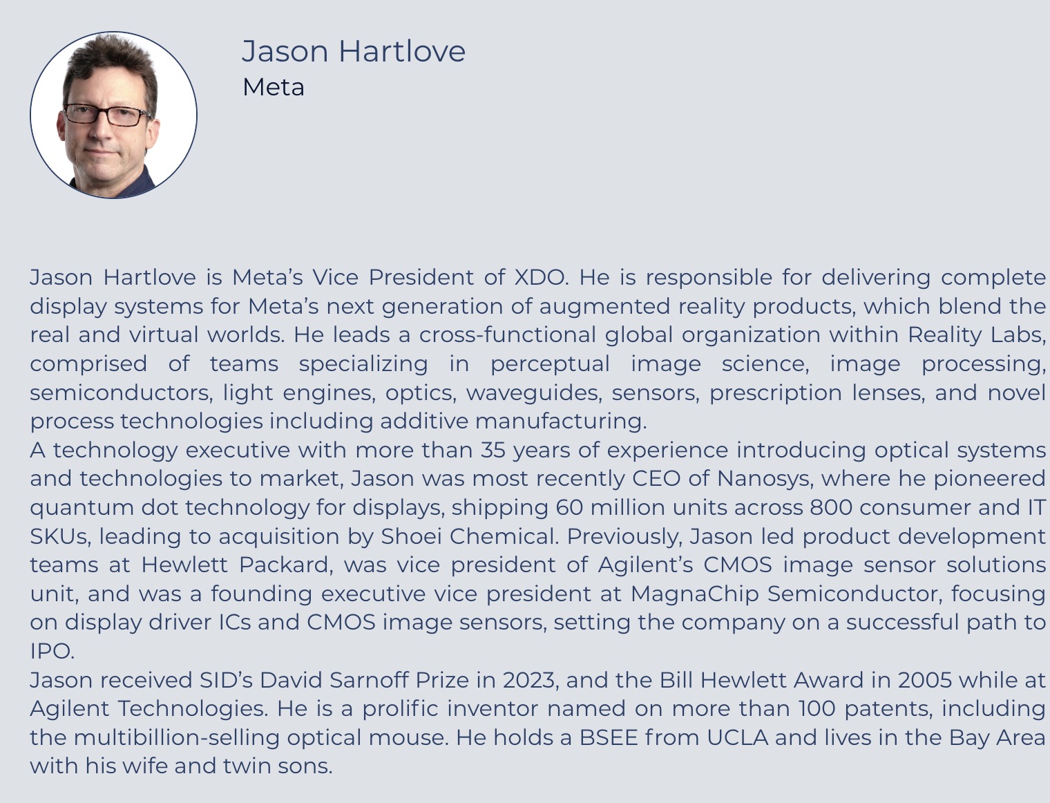 - Deep dive into the technical frontiers of AR/VR displays and optical systems
